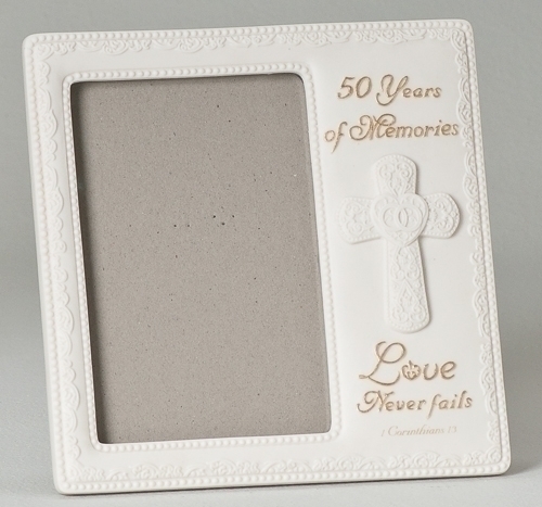 8″ 50TH ANNIV FRAME 4X6 PHOTO “LOVE NEVER FAILS”