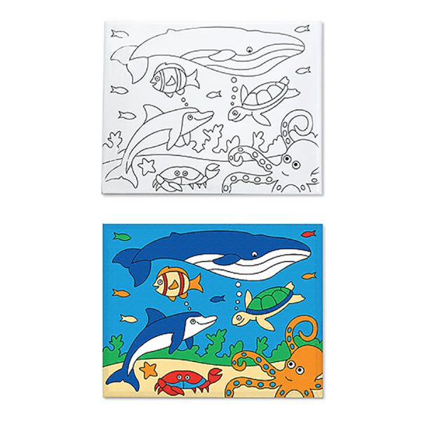 Grab a paintbrush and plunge into this fabulous scene of life beneath the waves. Six brilliant colors can be combined on the mixing tray to add details to this canvas to create your own “ocean” of painting pleasure.