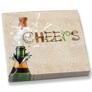 Letters created from wine elements adorn these champagne inspired dinner napkins. They are 3-ply, and contain 20 per pack.