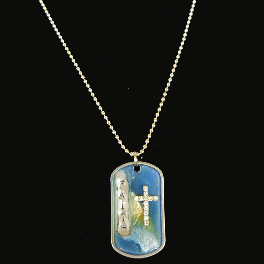 Crystal cross dog tag necklace