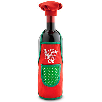 This festive mini apron with matching chef’s hat is the perfect gift for anyone who enjoys cooking and sipping wine. The apron fits right over any bottle neck and ties in the back. The apron features detailed trim and front pocket for a corkscrew. The hat is exicuted is the classic chef “floppy” style.