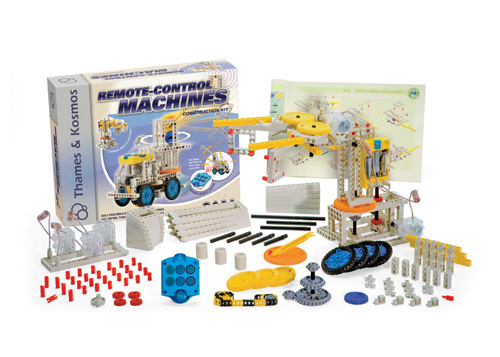 Construction KitBuild your own motorized vehicles and machines and control them with a wireless remote control unit. A unique six button infrared remote allows you to control three different motors simultaneously, moving each of them forward or in reverse, with easy-to-activate touch sensors. The three motors can be combined to make complex vehicles and machines in numerous configurations limited only by your imagination. Assemble ten models demonstrating different ways in which the motors can be used including a bulldozer, car, three-wheeler, crane, antique car, plow, folding car, formula one racer, three-blade dozer, and robotic arm. After you have built the models in the instructions, you can design your own remote control creations! The kit comes with three motors, remote control unit, battery holder, and building blocks. Collaborate with your fellow junior engineers to build fantastic and functional remote-control creations! The 48-page color instruction book included in this kit gives illustrated step-by-step instructions for the models to help children learn through play and develop their mechanical understanding, creative thinking skills, and hand-eye coordination. The 182 building pieces included in this set are compatible with those in all Thames & Kosmos Construction Series kits, Physics Series kits, Wind Power, and Hydropower kits.