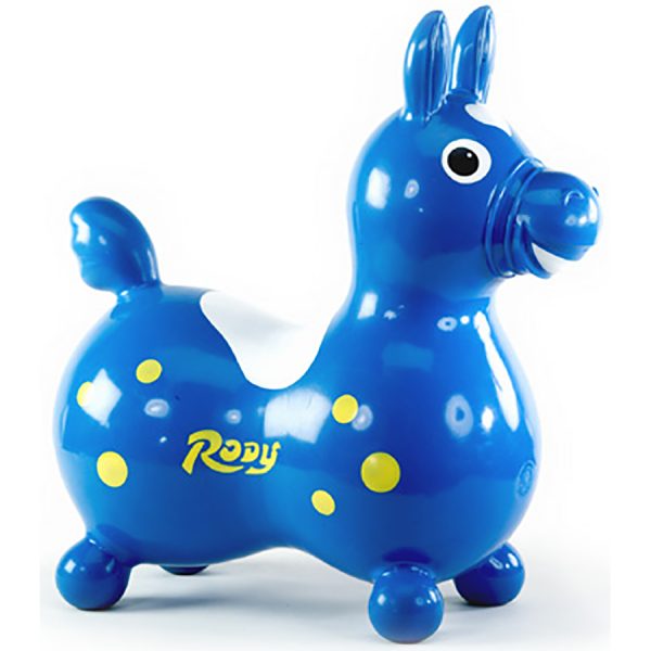 Rody hippity hop ride-on Horse! Made of super strong latex free vinyl, inflatable to adjust for the weight of child. A fun toy for ages 2-4. Great for developing balance and coordination skills. Made in Italy.