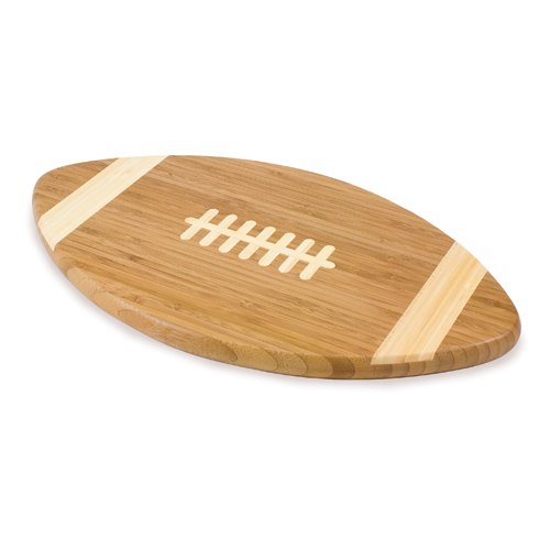 Description: Touchdown! cutting board is a 15” x 8.75” x 0.75” board made of eco-friendly bamboo in a football design, with 123 square inches of cutting surface. It can be used as a cutting board or serving tray, or use both sides of the board, one for cutting and the other for serving. The backside of the board is solid dark bamboo.