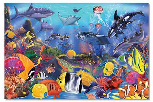 Explore the wonders of the deep blue sea in this vibrantly illustrated cardboard puzzle. 2′ x 3′ when assembled, the 48 extra-thick pieces feature an Easy-Clean surface to keep this undersea puzzle scene looking like new.
